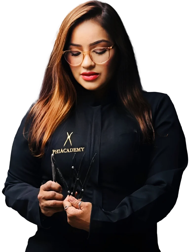 Faço parte da Academia PHIBROWS PhiAcademy. Os cursos da PhiAcademy são baseados no sistema Craft Master. desde 2023. Também sou professora e formadora de novas profissionais, com cursos de Design de Sobrancelhas e Micropigmentação Técnica Microblading (Tebori), do básico ao avançado.